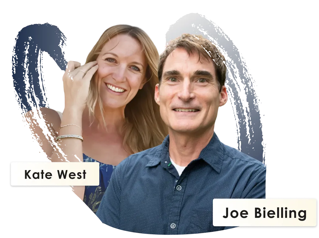 We’re Joe Bielling and Kate West—therapists, healers, and transformation experts who have dedicated our lives to helping high-achieving professionals break free from the patterns that keep them stuck.